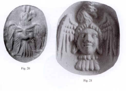Fig. 21. Sceau romain avec aigle dont le corps est un visage humain. Kunsthistorisches Museum, Vienne, no. d' inv. XI B 483. Photographie d' après LIMC, IV, 1988, p. 166, 266.