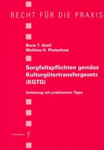"Wir nehmen die Inkraftsetzung des Kulturgütertransfergesetzes und dessen Verordnung zum Anlass, den davon betroffenen Kreisen, aber auch interessierten bzw. indirekt betroffenen Dritten einen rechtlichen Einblick in die nunmehr spezialgesetzlich geregelten Sorgfaltspflichten bei der Übertragung von Kulturgut im Kunsthandel und im Auktionswesen zu geben. Die Ausführungen werden mit praktischen Tipps ergänzt." (op. cit., Grell, Boris T., Plutschow, Mathias H.: Sorgfaltspflichten gemäss Kulturgütertransfergesetz (KGTG), Zürich et al. 2005, S. 5)