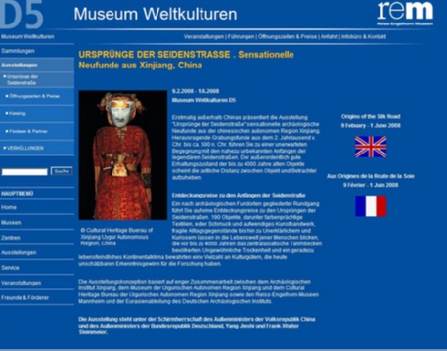 Erstmalig außerhalb Chinas präsentiert die Ausstellung "Ursprünge der Seidenstraße" sensationelle archäologische Neufunde aus der chinesischen autonomen Region Xinjiang. Herausragende Grabungsfunde aus dem 2. Jahrtausend v. Chr. bis ca. 500 n. Chr. führen Sie zu einer unerwarteten Begegnung mit den nahezu unbekannten Anfängen der legendären Seidenstraßen. Der außerordentlich gute Erhaltungszustand der bis zu 4000 Jahre alten Objekte scheint die zeitliche Distanz zwischen Objekt und Betrachter aufzuheben.(...)